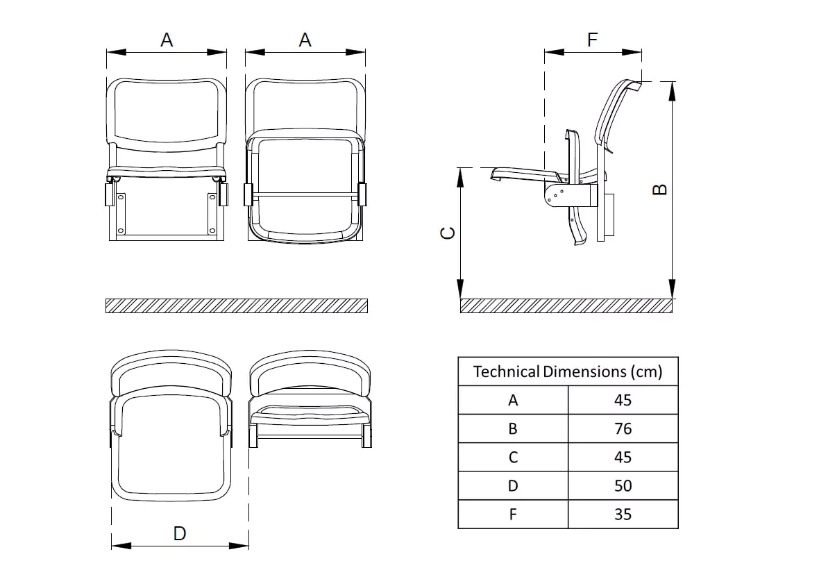 Azurit Folding 02 Product Information Engineered for hospitality zones and flexible seating arrangements, this model features smooth folding and soft-touch finishes. It brings together comfort and practicality for elite stadium spaces.