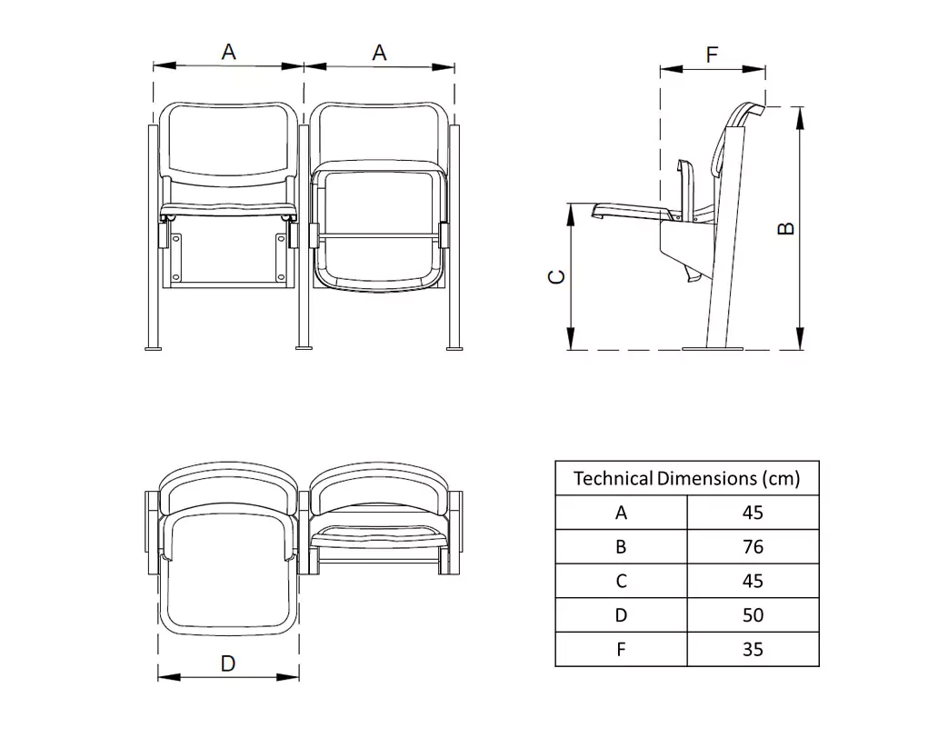 Azurith Folding VIP Product Information This foldable stadium seat combines silent return mechanics with premium cushioning, tailored for upscale spectator areas. Its compact design and fire-resistant build make it ideal for VIP platforms and multi-purpose stands.
